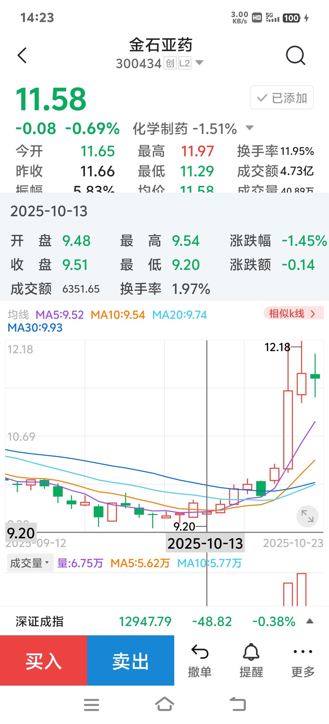 海格通信昨日金针探底:复制金石亚药9.20元时的起涨信号一样,现在买进是右侧交易