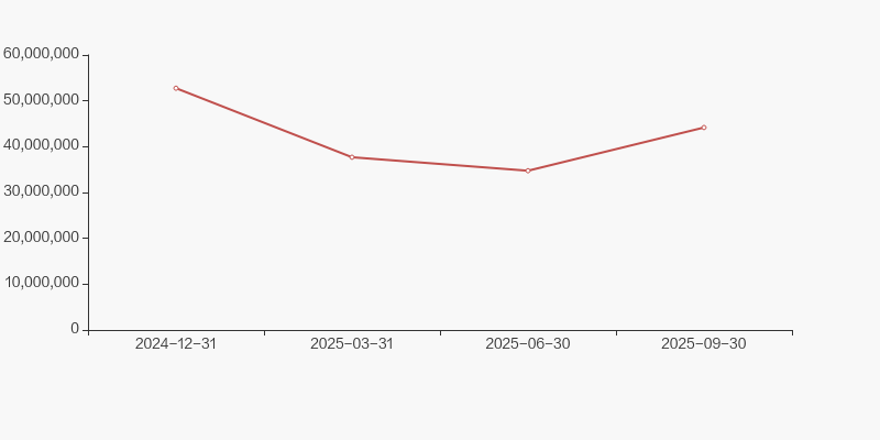 截至2025年9月30日,公司最新总股本为24.82亿股,其中流通股本为24.78亿股。户均持有流通股数量由上期的1.34万股上升至1.8万股,户均流通市值23.54万元。