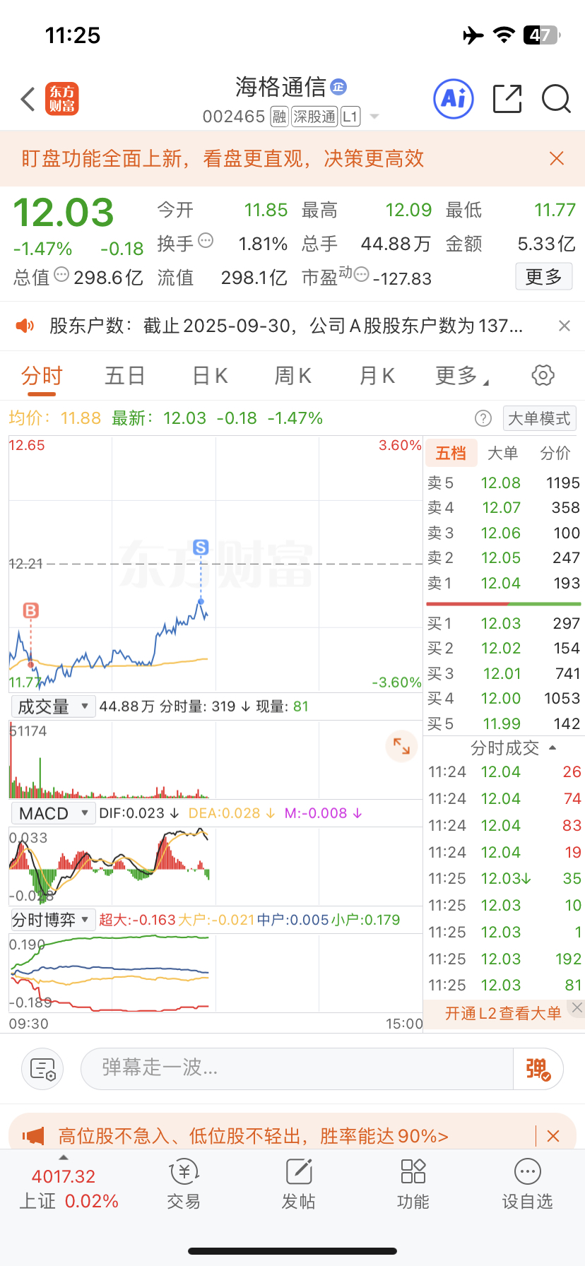 $海格通信(SZ002465)$ 今日任务完成。关软件,明天见。