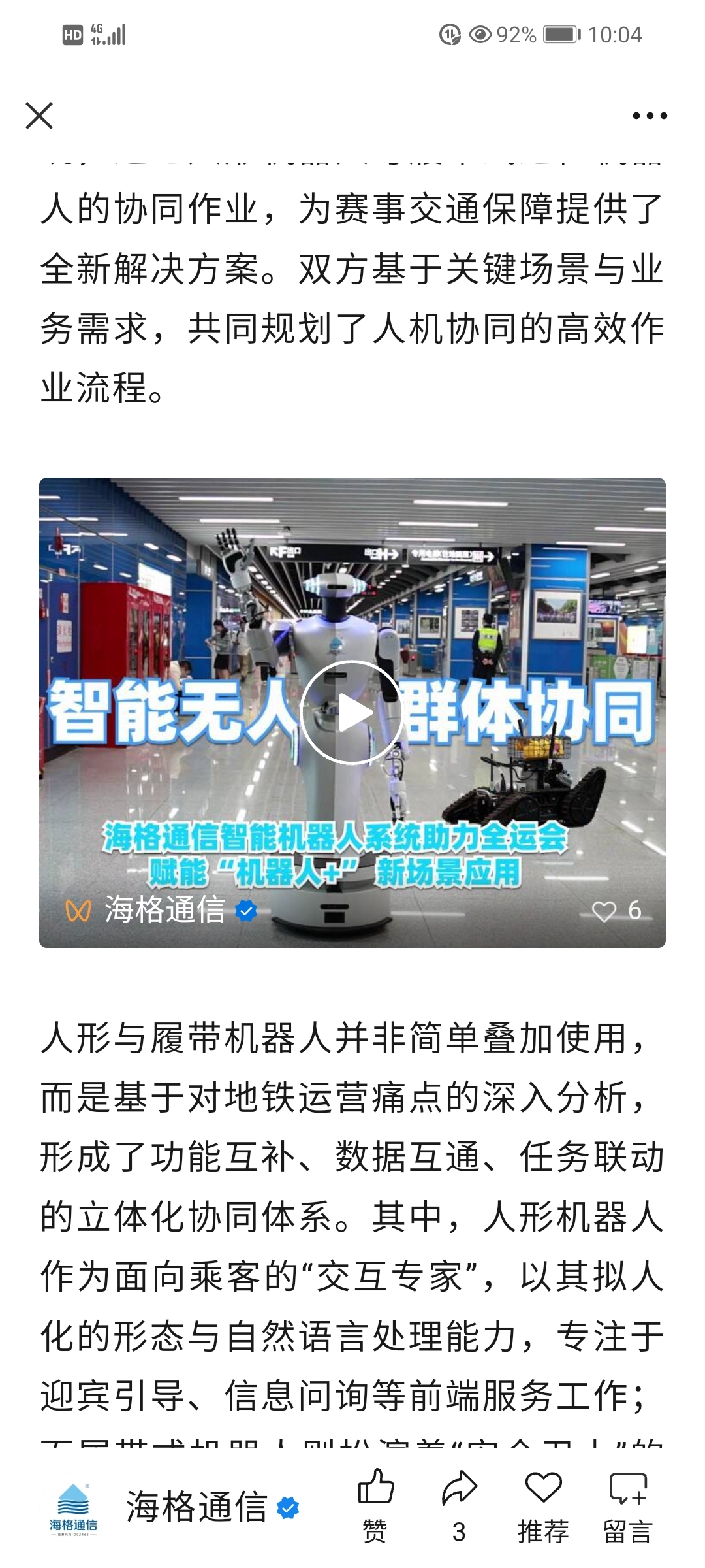 $海格通信(SZ002465)$ 海格通讯的机器人 应用场景,通讯应用保障系统!通导一体………