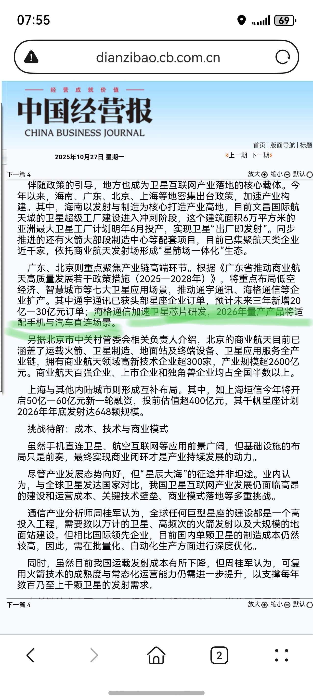 $海格通信(SZ002465)$ 中国经营报27号报道,26年业绩可期
