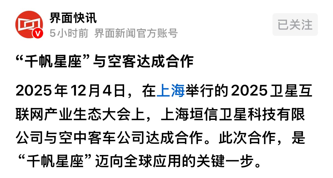 $海格通信(SZ002465)$ 海格通信与上海垣信卫星的“千帆星座”产业链关联和合作关系。海格通信作为千帆星座产业链上的重要企业,参与地面设备及终端环节的建设。