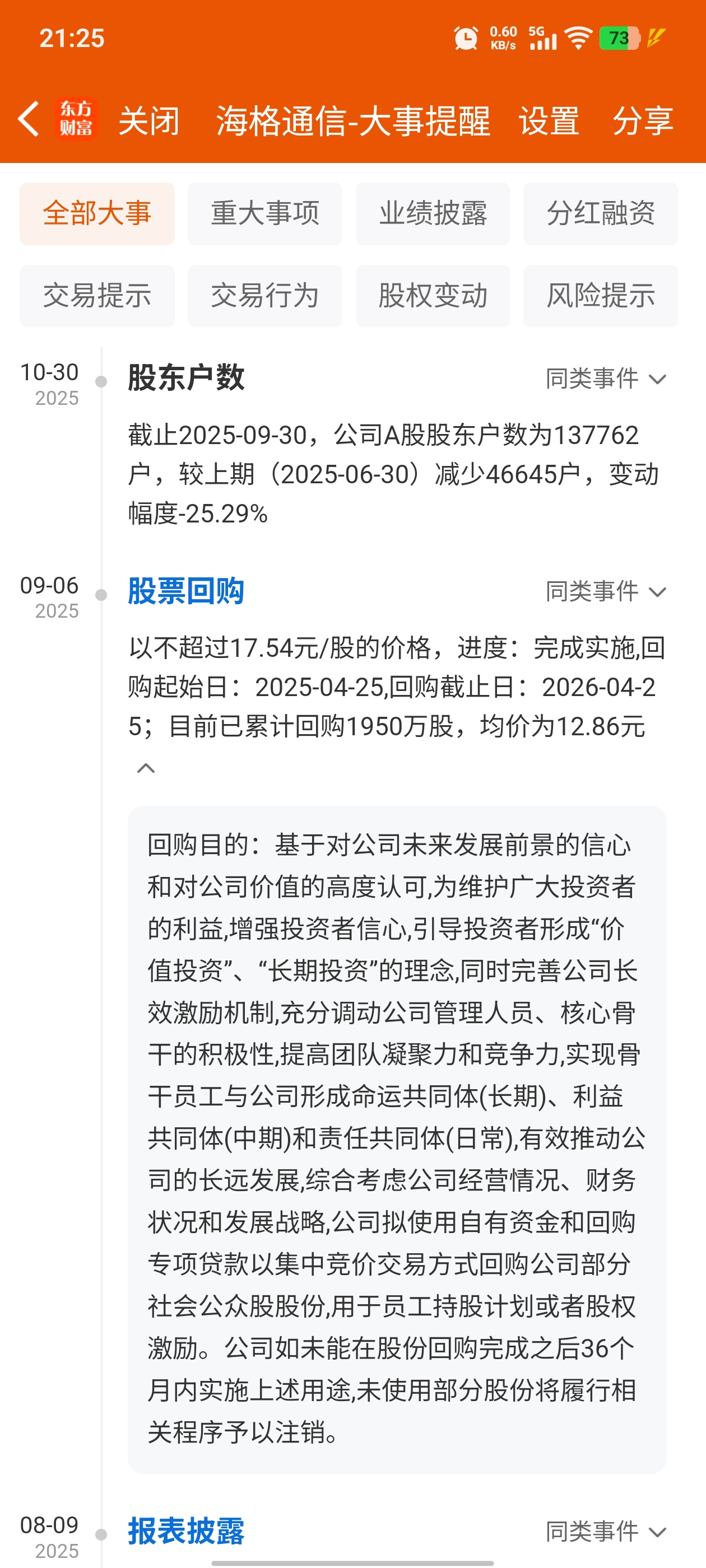 $海格通信(SZ002465)$ 公司以12.86交易均价,回购股票,刚看到这个公告,也就是说现在这个股处于 相对低估价格么