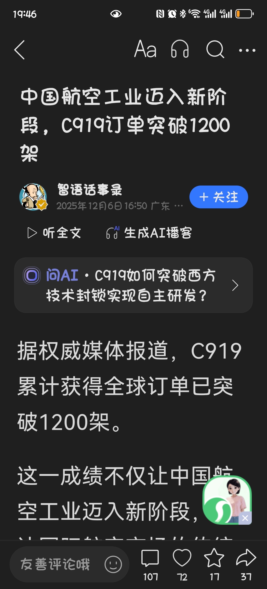 $海格通信(SZ002465)$ 权威媒体报道,C919累计获得全球订单已突破1200架。
