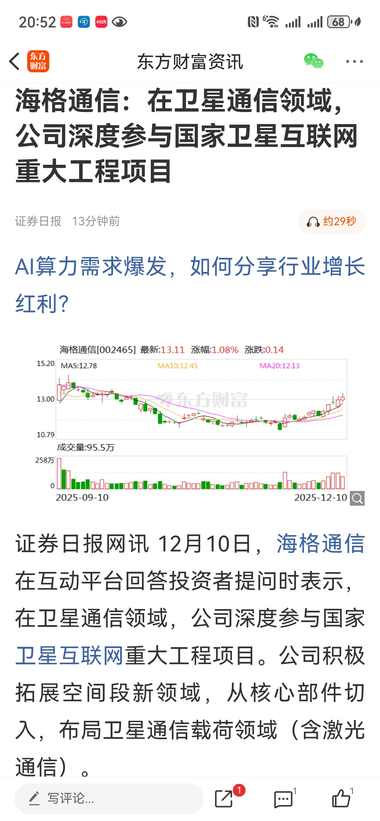 $海格通信(SZ002465)$ 海格已经有激光通讯了