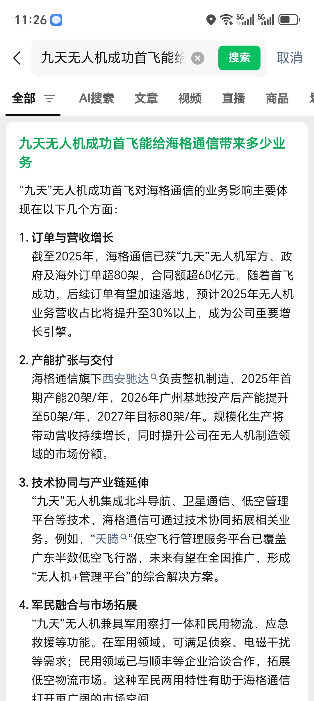 九天无人机订单80架。60亿。委托标的:买卖方向:笔记: