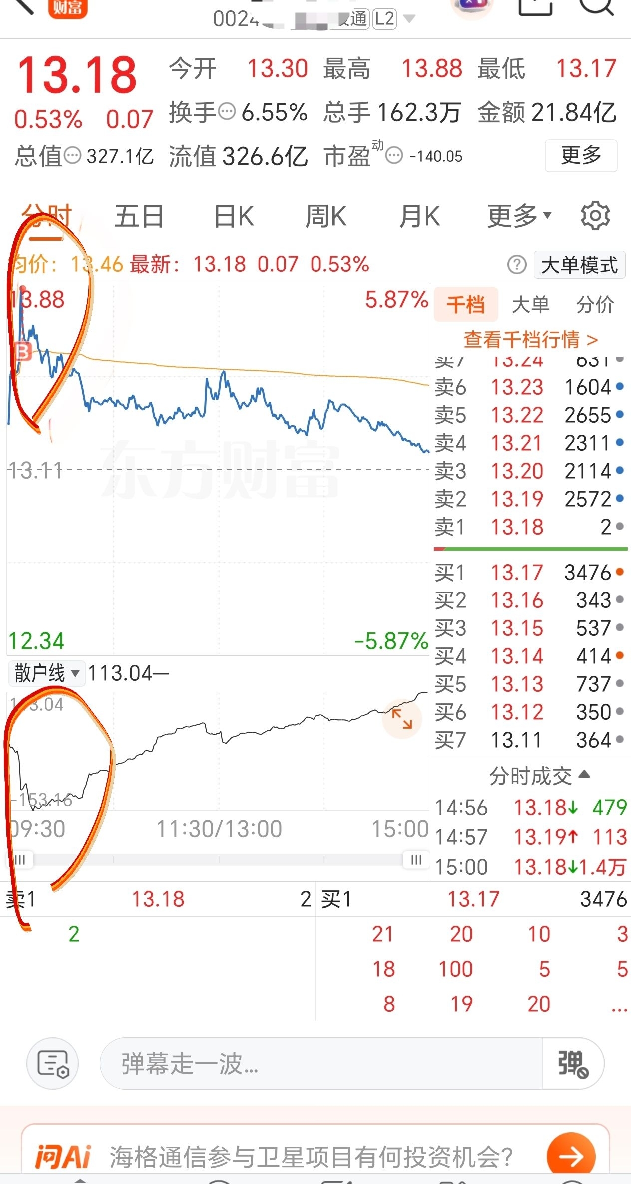 $海格通信(SZ002465)$ 我不得不说这个诱多真像冲涨停,散户线一路向下,量能放大,高开急速拉升。要没有这一下,我还能逆势赚钱呢,好