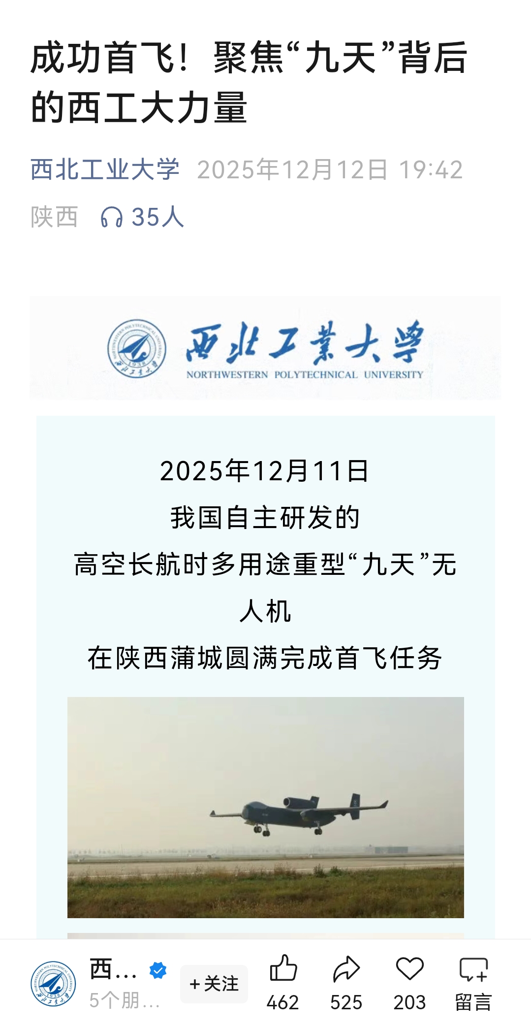 实锤:西工大参与九天无人机研发,腻害了哦。