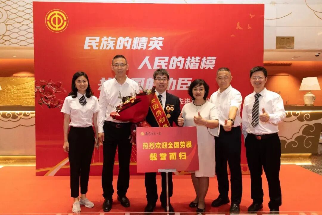 海格通信副总工、北斗导航首席科学家杨春宝凭借在北斗导航领域技术研发的卓越贡献,荣获“全国劳动模范”,并作为获奖代表参加会。