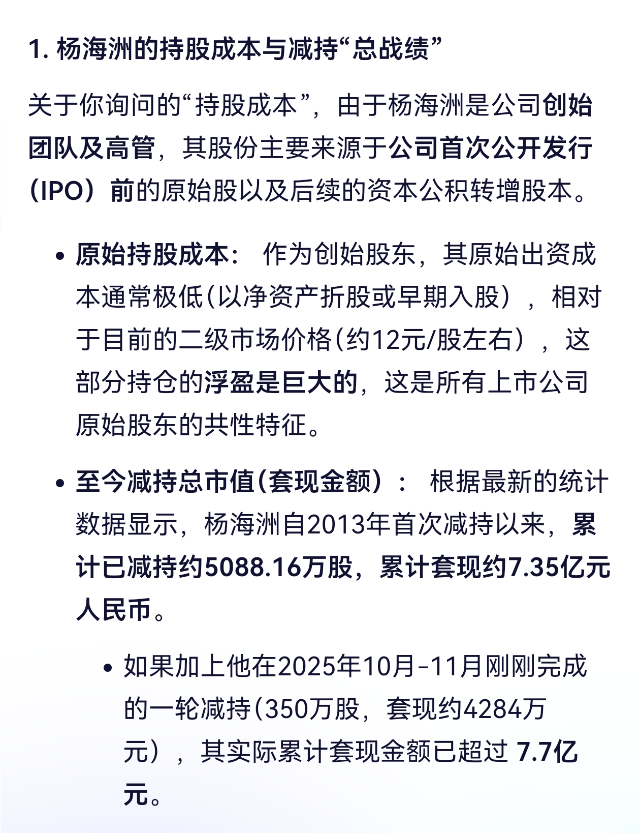 千问给出统计数据,海格通信只有杨海洲一个人赚得盆满钵满。