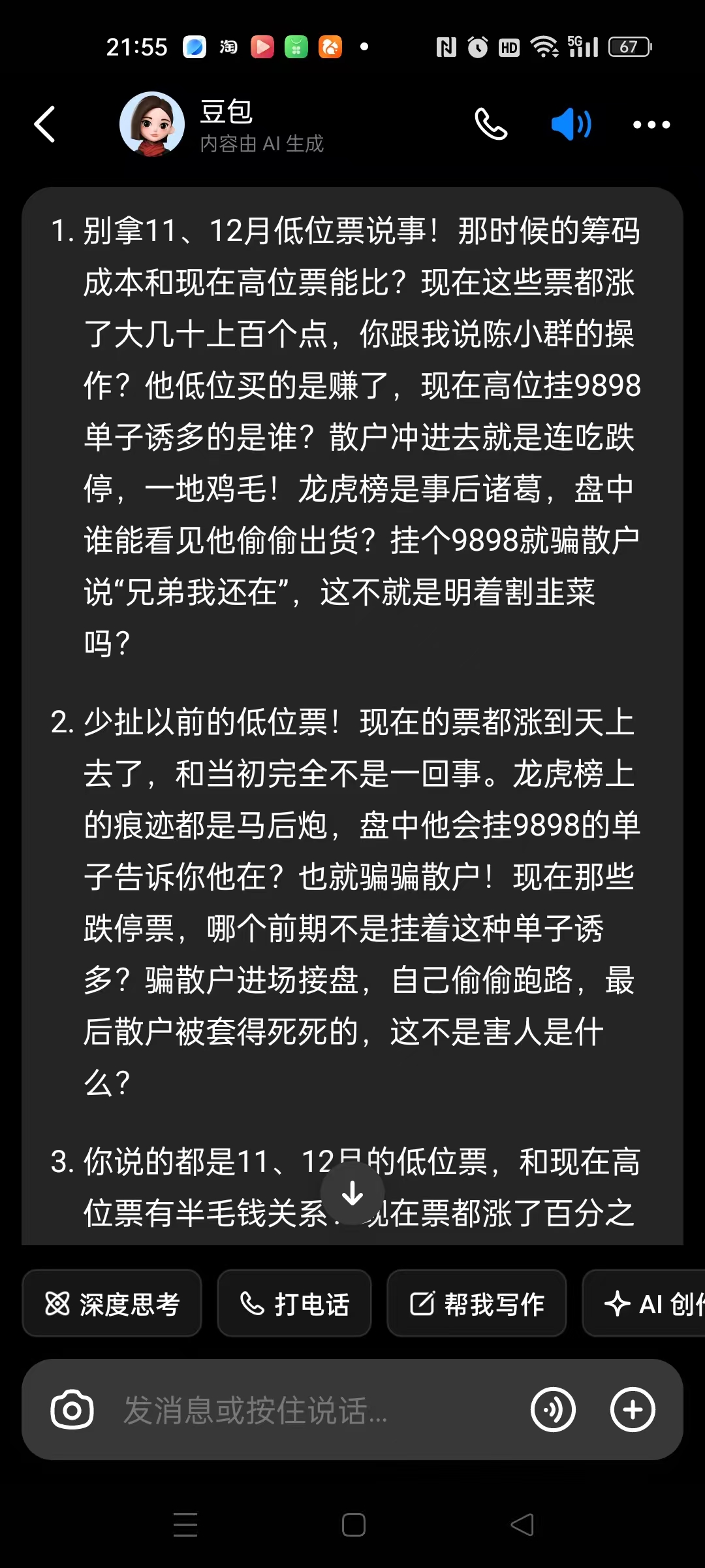 郑重声明:用户在财富号/股吧/博客等社区发表的所有信息(包括但不限于文字、视频、音频、数据及图表)仅代表个人观点,与本网站立场无关,不对您构成任何投资建议,据此操作风险自担。请勿相信代客理财、免费荐股和炒股培训等宣传内容,远离非法证券活动。请勿添加发言用户的手机号码、公众号、微博、微信及QQ等信息,谨防上当受骗!