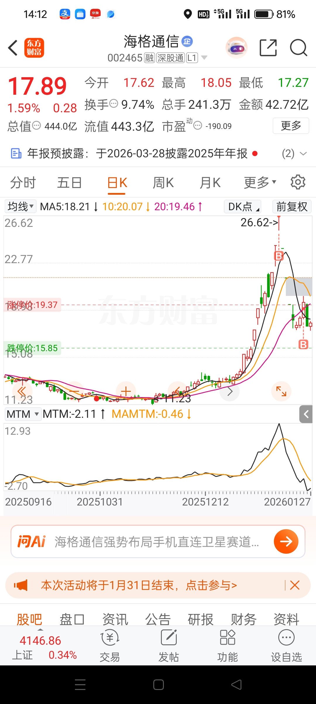 温馨提示: 1.根据《证券法》规定,禁止编造、传播虚假信息或者误导性信息,扰乱证券市场;2.用户在本社区发表的所有资料、言论等仅代表个人观点,与本网站立场无关,不对您构成任何投资建议。用户应基于自己的独立判断,自行决定证券投资并承担相应风险。《东方财富社区管理规定》