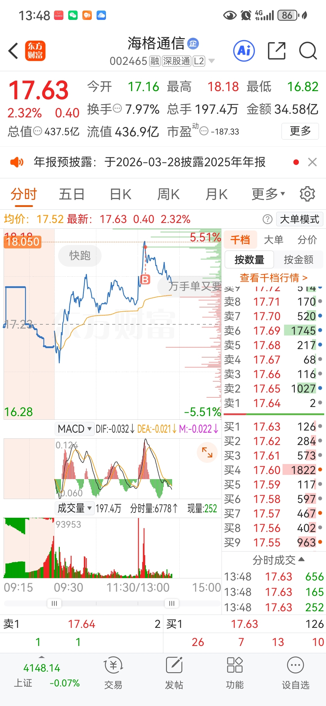 $海格通信(SZ002465)$ 一手也能买崩?