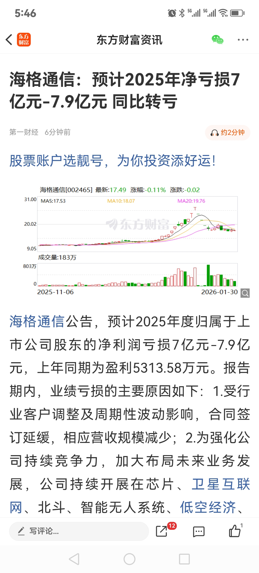 $海格通信(SZ002465)$ 祸不单行,一3开盘