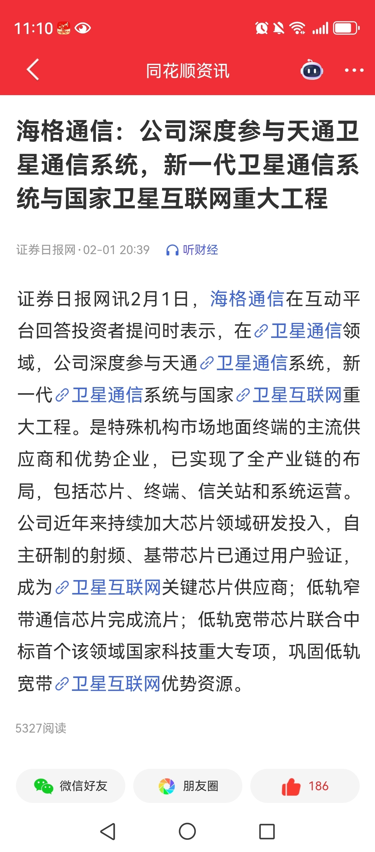 海格通信在卫星通信领域,公司深度参与天通卫星通信系统,新一代卫星通信系统与国家卫星互联网重大工程。