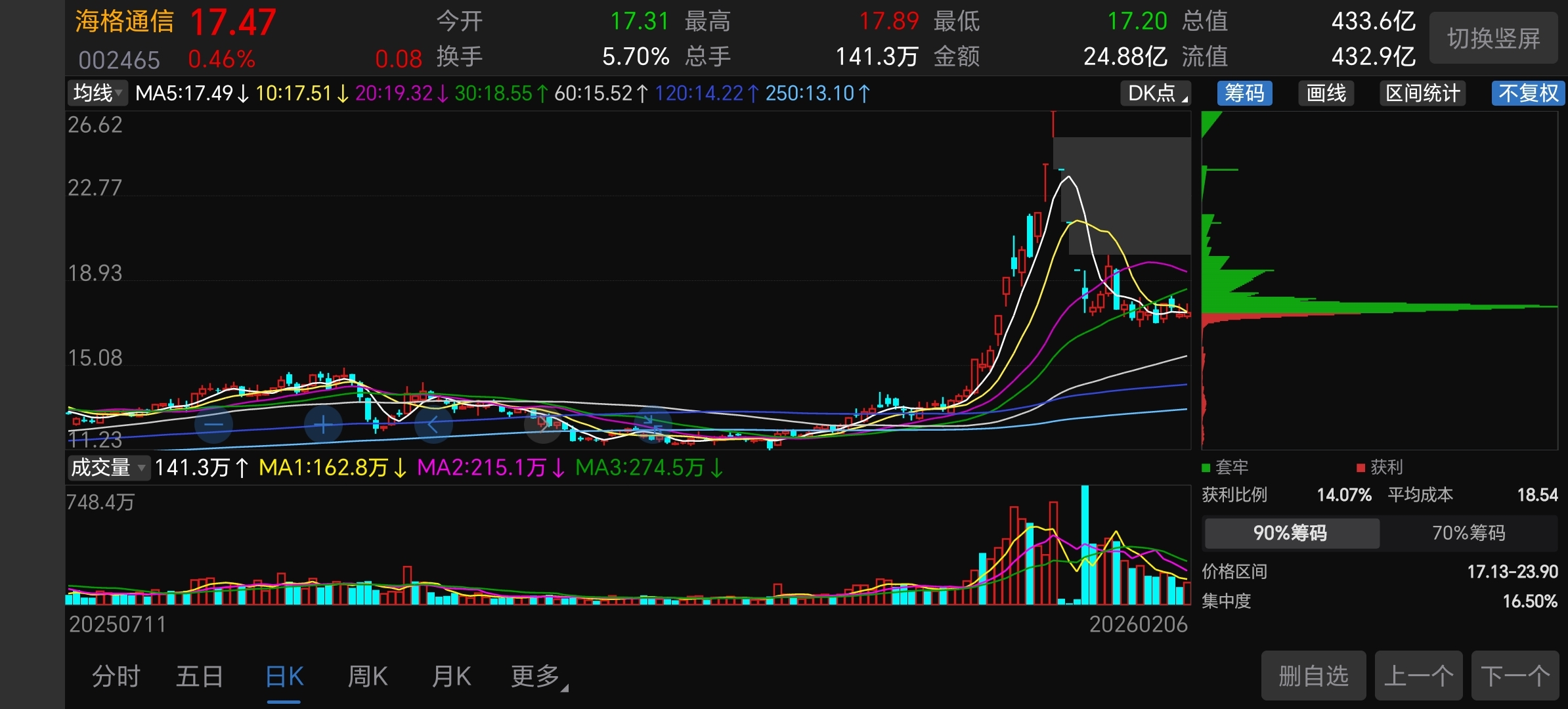 $海格通信(SZ002465)$ 筹码锁定良好,下周该你表现了