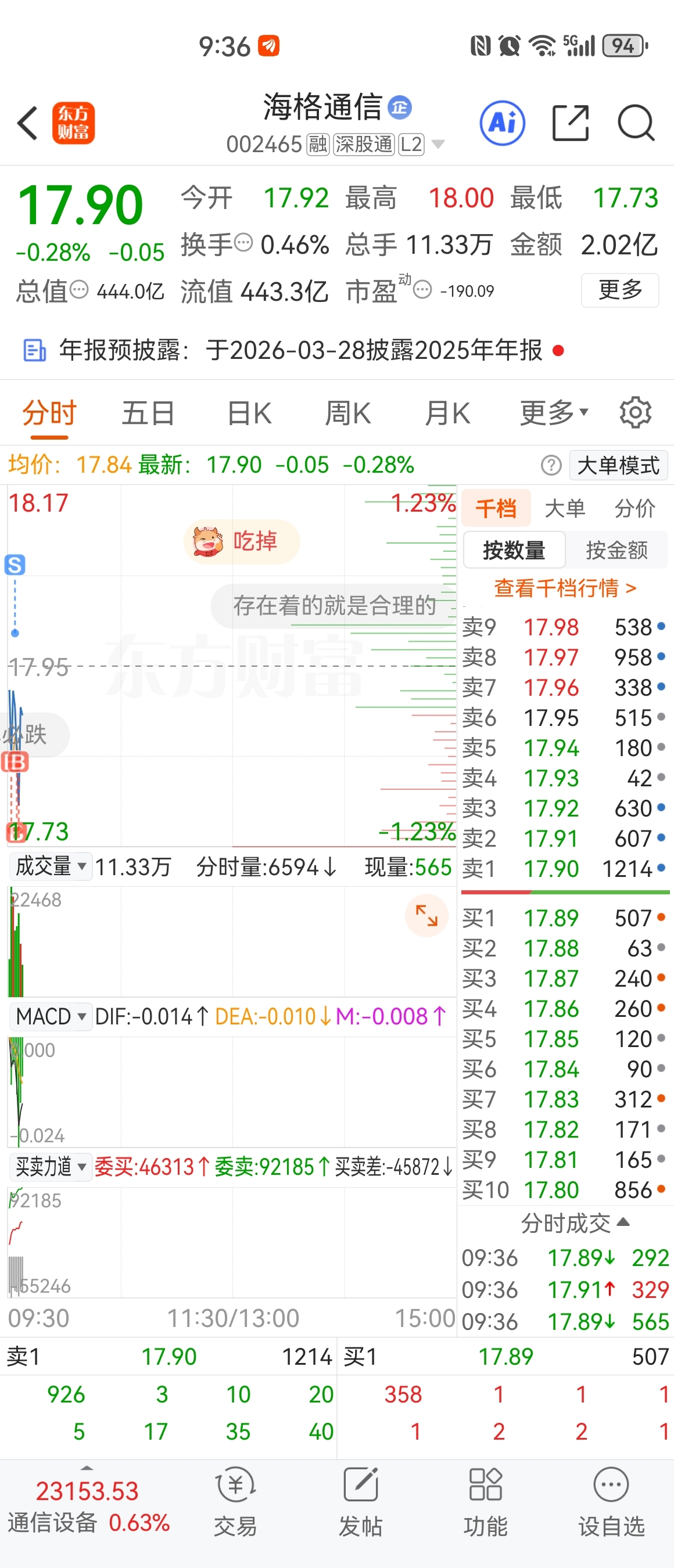 $海格通信(SZ002465)$ 每日一T,陪主力过年