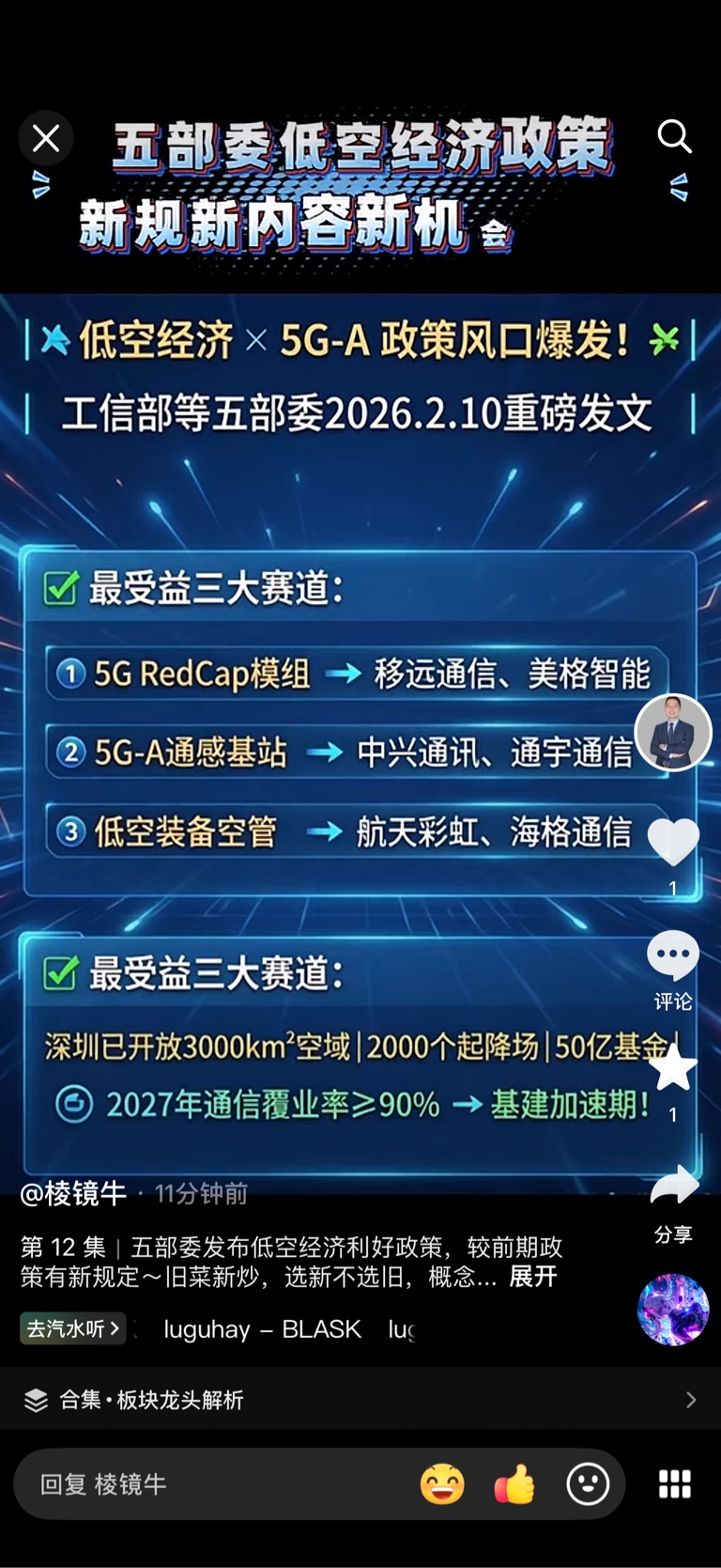 $海格通信(SZ002465)$ 抖爸爸开始推了