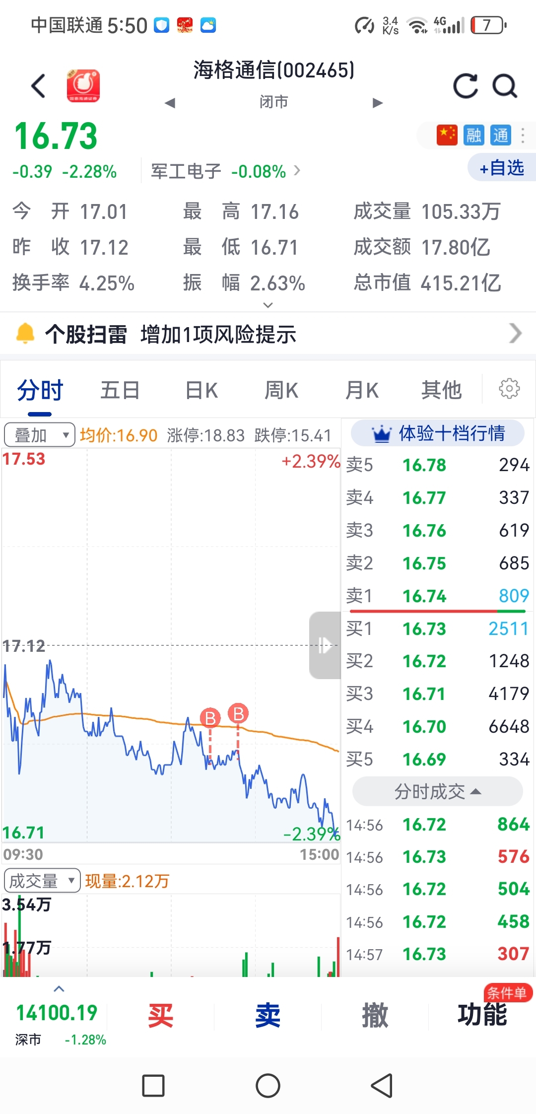 $海格通信(SZ002465)$ 虽然被套了,始终坚信敢跌我就敢买
