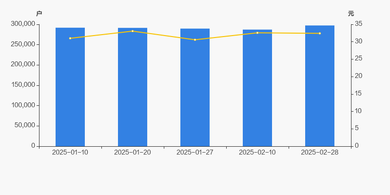 截至2025年2月28日,公司最新A股总股本为16.41亿股,其中流通股本为14.76亿股。户均持有流通股数量由上期的5141股下降至4966股,户均流通市值16.1万元。