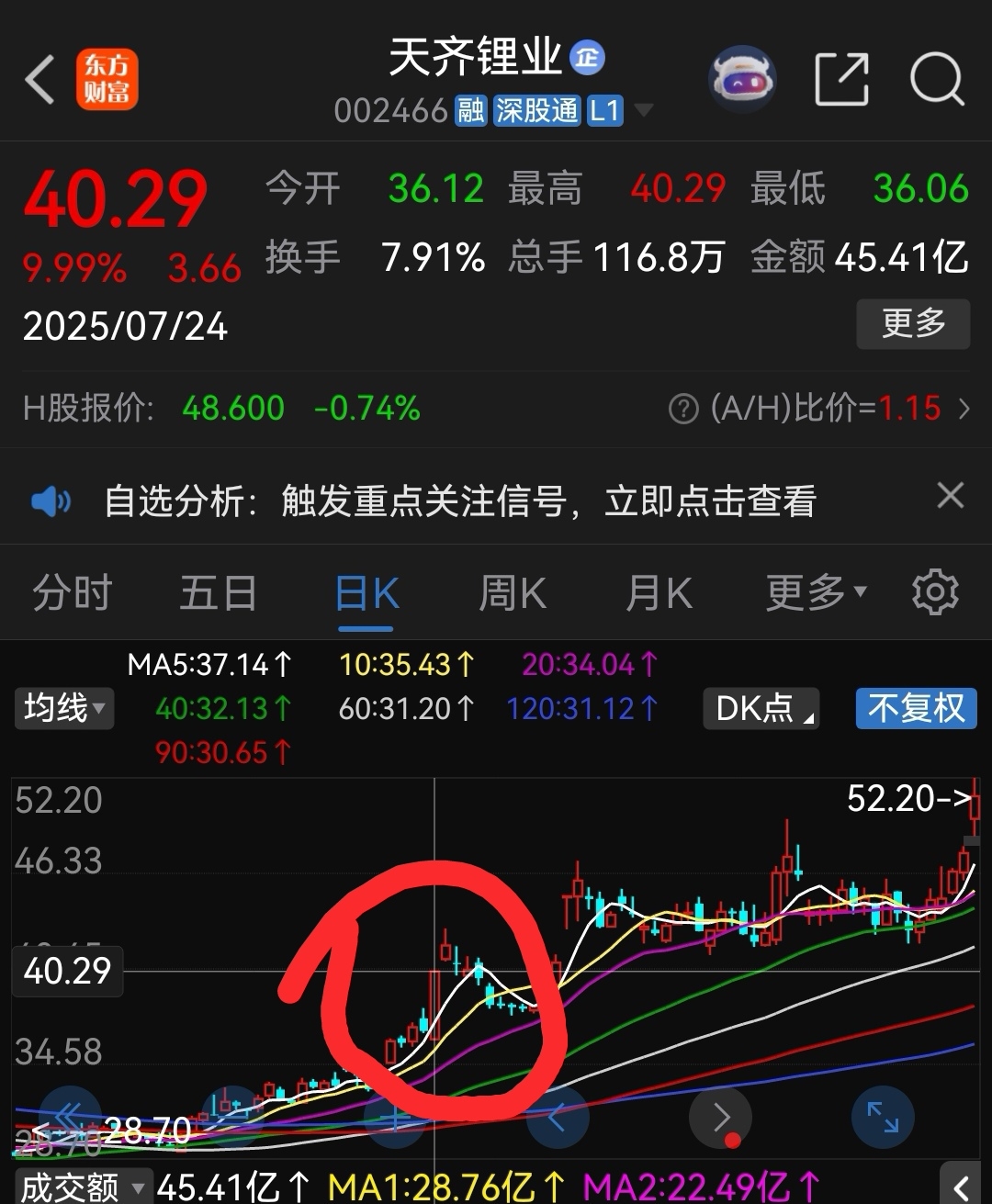 $天齐锂业(SZ002466)$ 很久没涨停了。