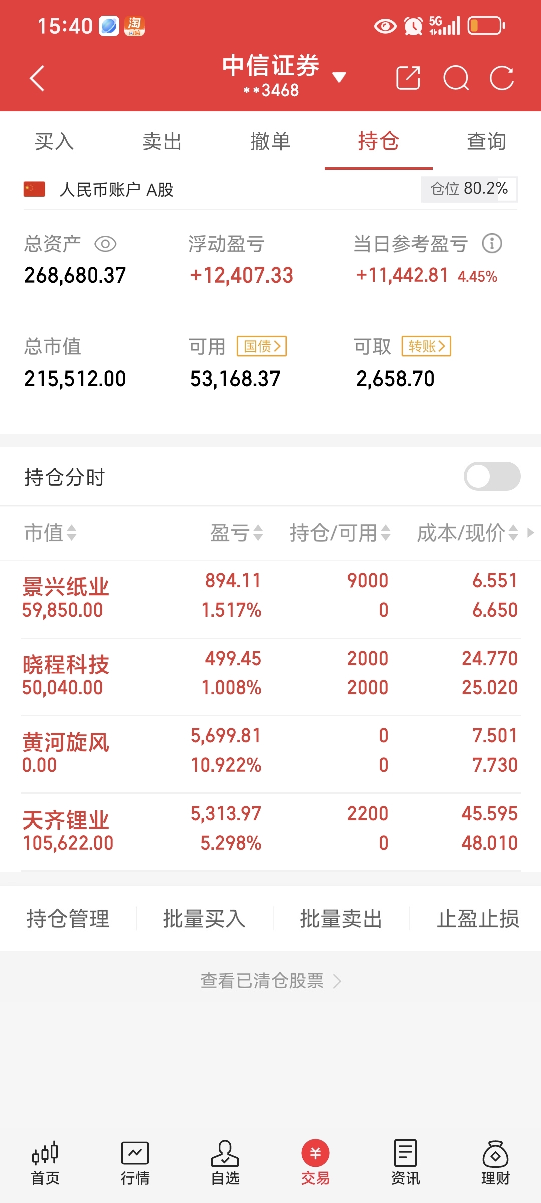 20w本金挑战一年翻3倍,到60万!(第10天)总资产:26.86w当日参考盈亏