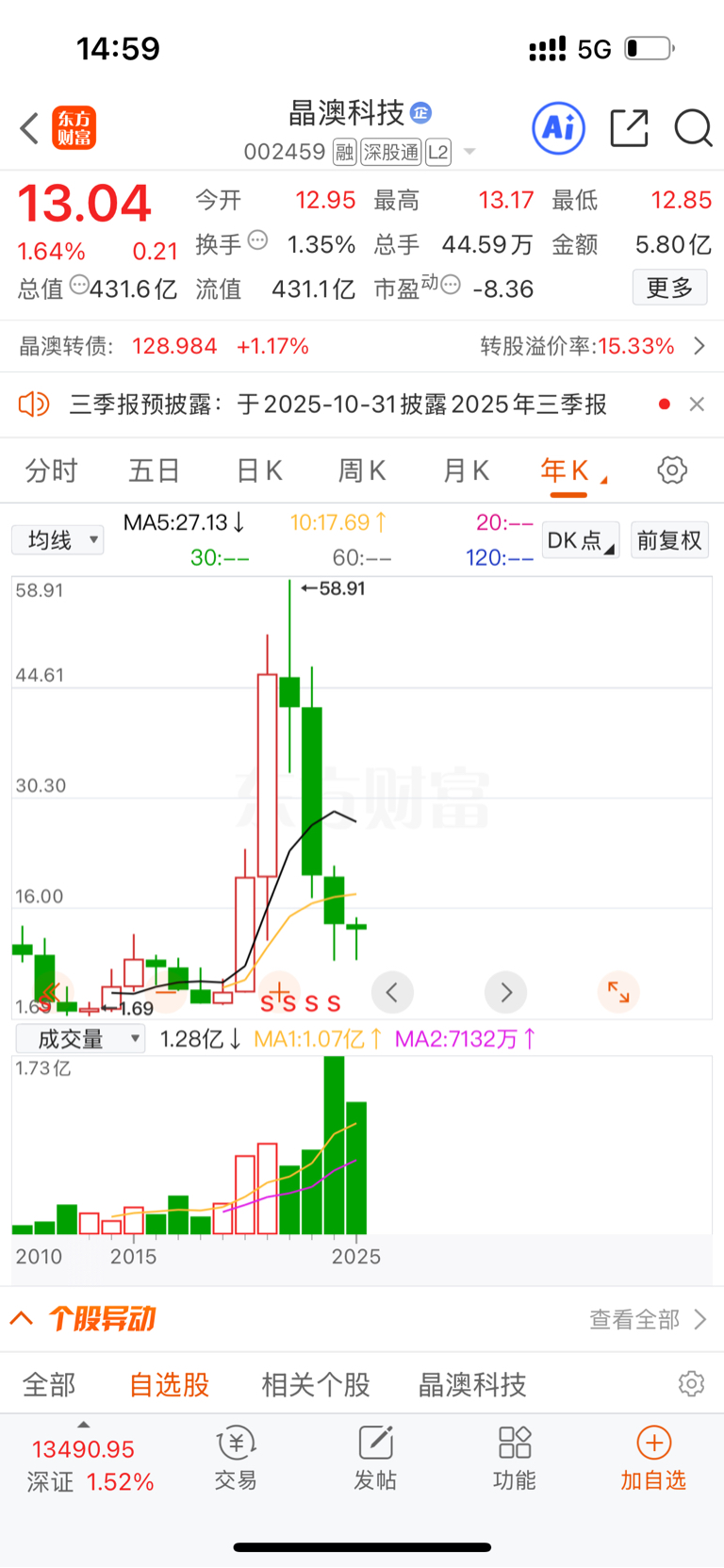 $天齐锂业(SZ002466)$ 被牛排老师看中之后50多建仓 38满仓抄底 晶澳已经绿了4年了 而且牛排老师不割肉 第五年基本也好不了 太可怕了@可爱的牛排2