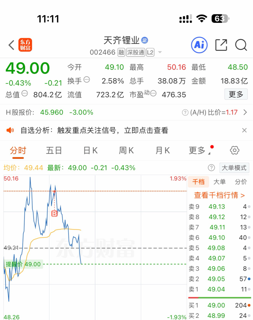 $天齐锂业(SZ002466)$ 常规操作,勿6!