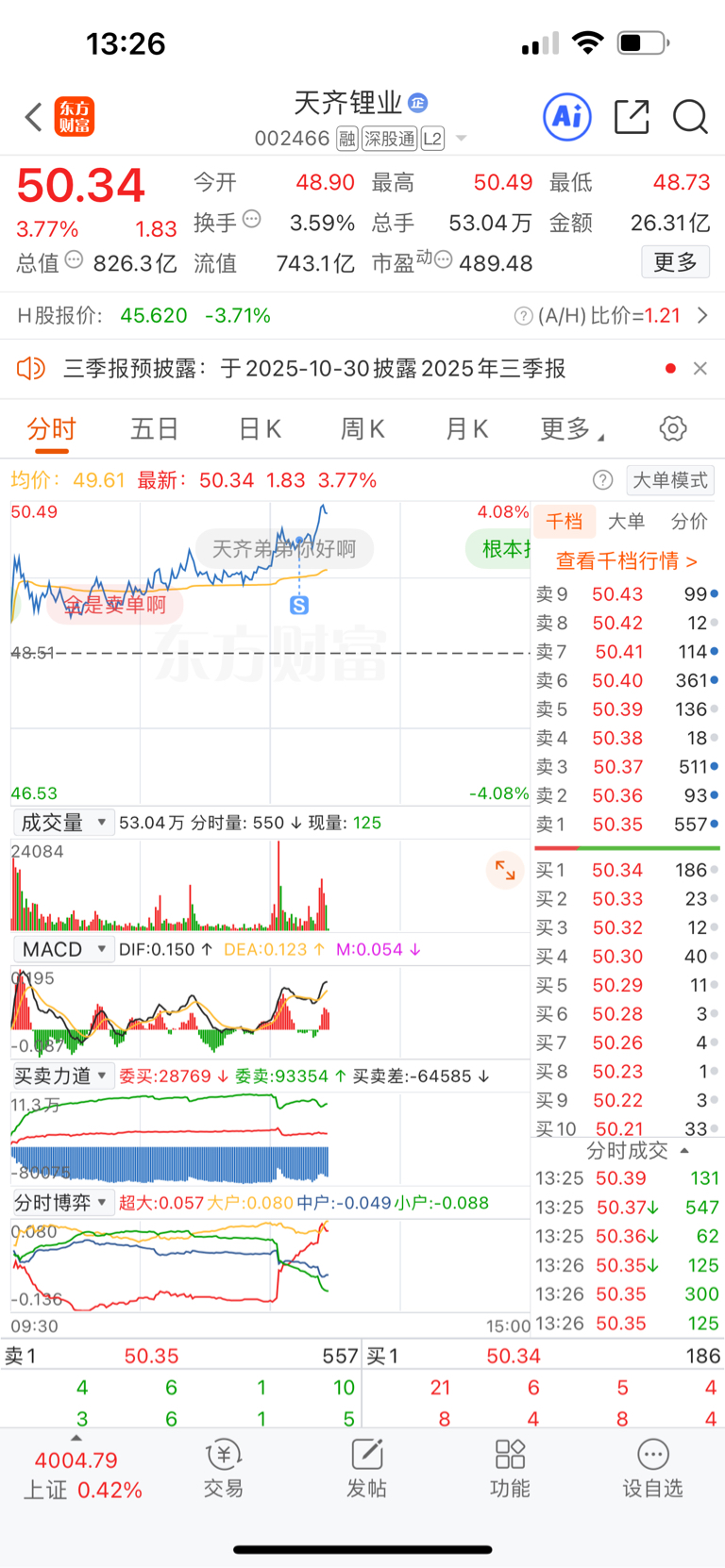 $天齐锂业(SZ002466)$ 29拿到50清仓