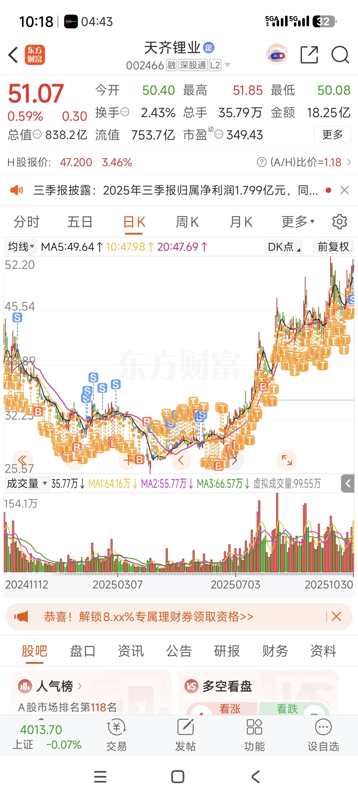 最高时我持有8万股天齐锂业,亏损160万,今天终于回本清仓,套了我三年。