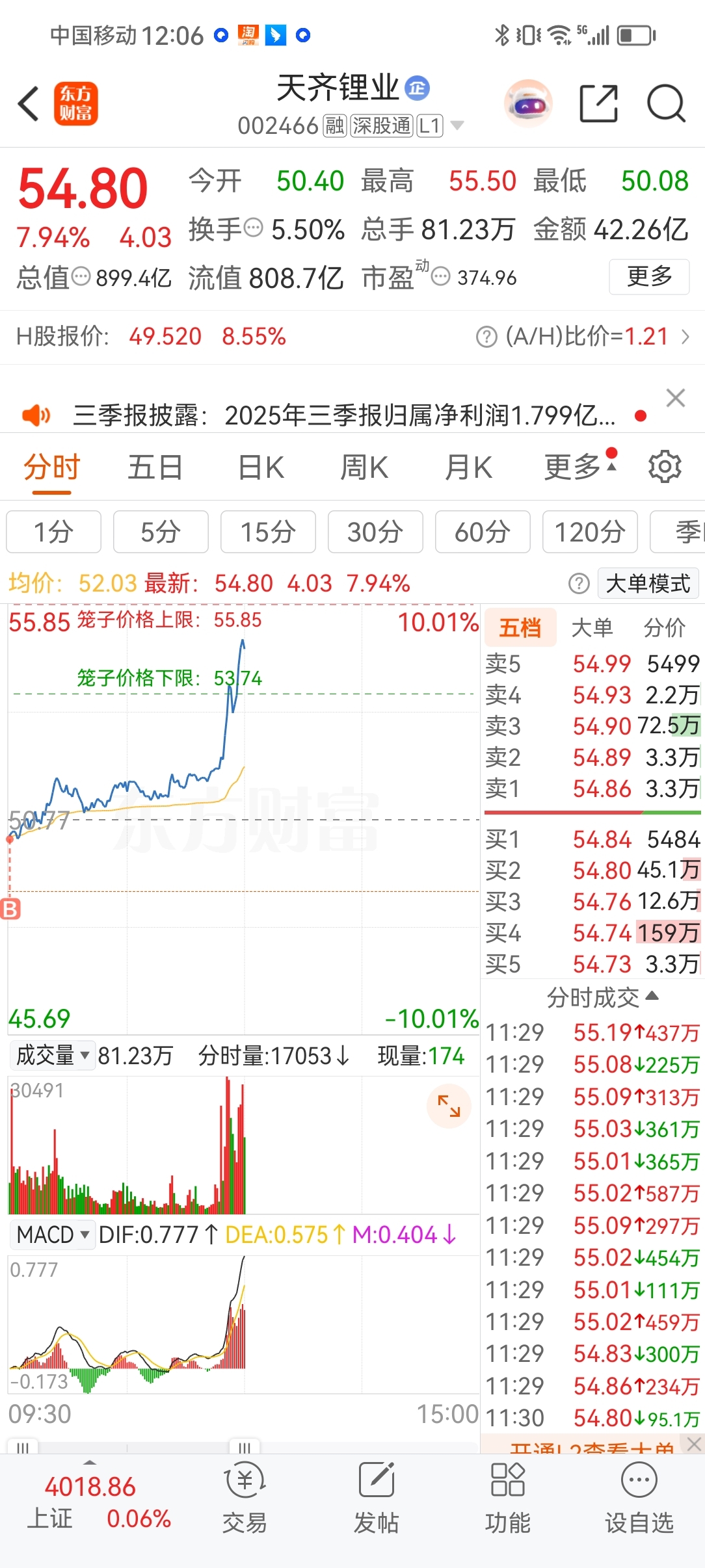 $天齐锂业(SZ002466)$ 还好早上进了一点