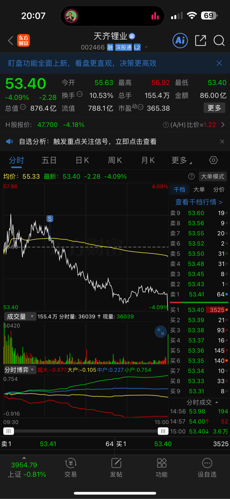 $天齐锂业(SZ002466)$ 昨天开盘买的 今天就走了 下个礼拜 在买回来 做一个套利