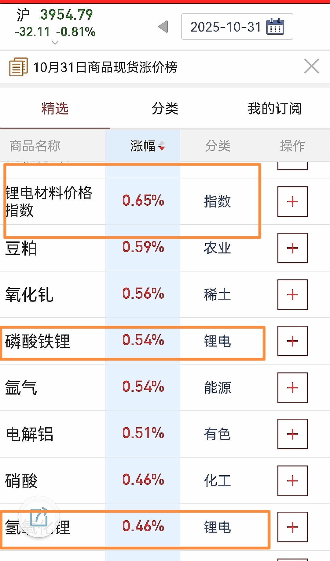 $天齐锂业(SZ002466)$ 我首先承认,周五被主力狠狠割了一刀,不过,由此可以看出,今日之天齐锂业的主力,已经不是当年的有势力有格局的主力了。若说锂矿,大中矿业,3连板了。若说现货,周五都在涨呢,看下面截图。天齐锂业的主力,怎么就看上了俺的一瓜二枣三花生呢?主力,咋不有点出息,何必这样匆匆忙忙慌慌张张地割那点干嘛?