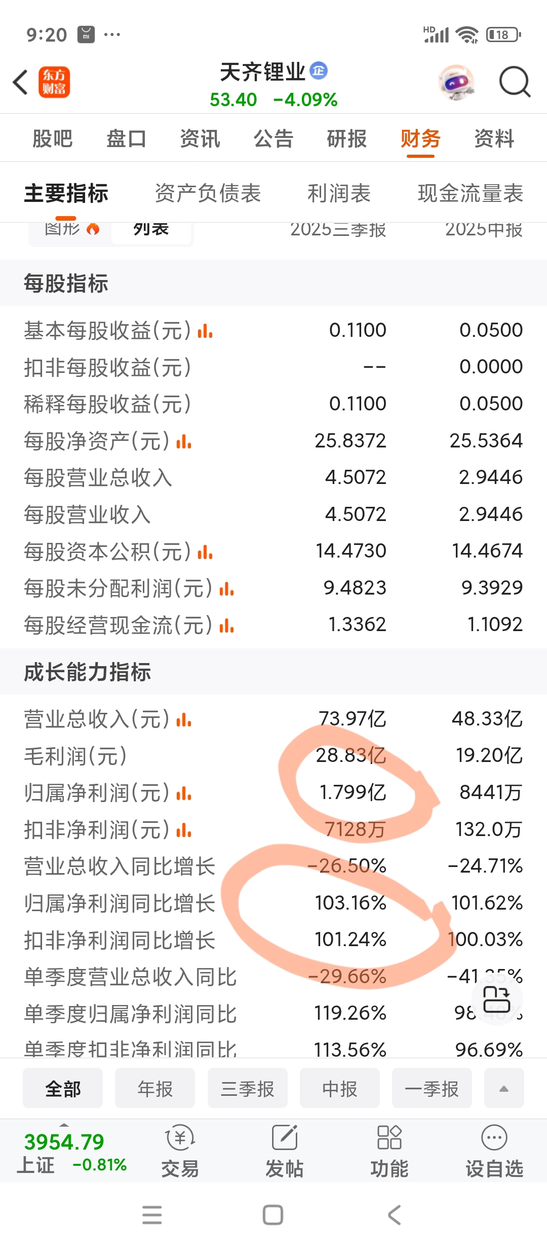 $天齐锂业(SZ002466)$ 有没有哪位高人给科普一下呀?去年二四年第三季度是-57个亿。今年25年第三季度是一个多亿,1.7亿。你去年付57个亿。等于赔了57亿元。就当你去年盈利1块钱行不?今年今年盈利了1.7亿,那我是你的多少倍?那不该是1.7亿倍吗?那怎么就盈利个100%呢?何况你亏了57个亿。这亏损程度咋算的到底?