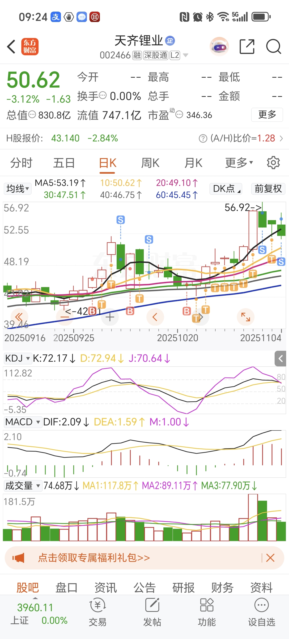 $天齐锂业(SZ002466)$ 等我慢慢接你,小齐
