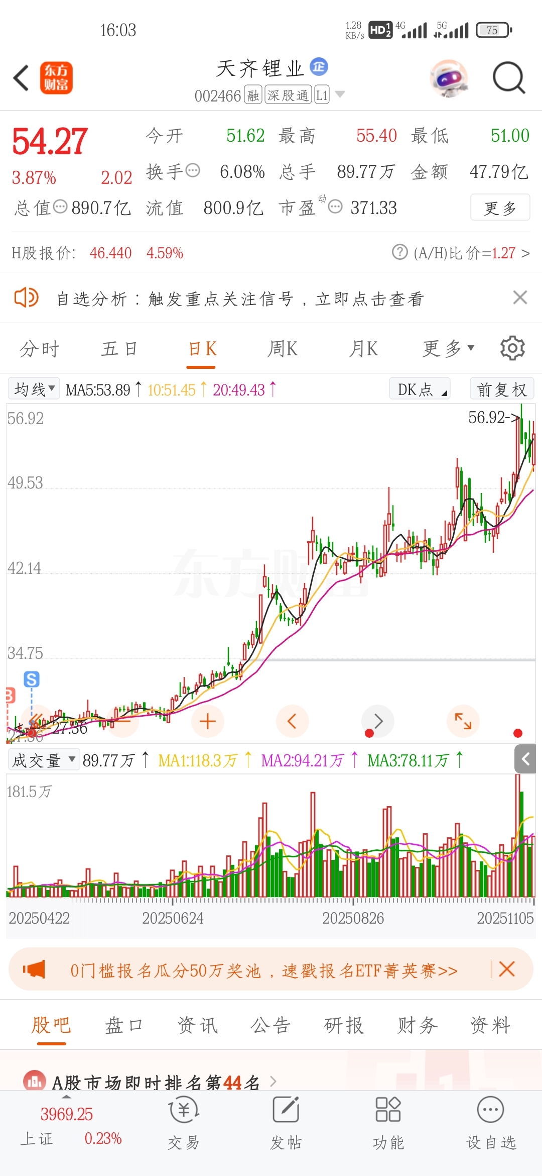 $天齐锂业(SZ002466)$ 错过了一个亿
