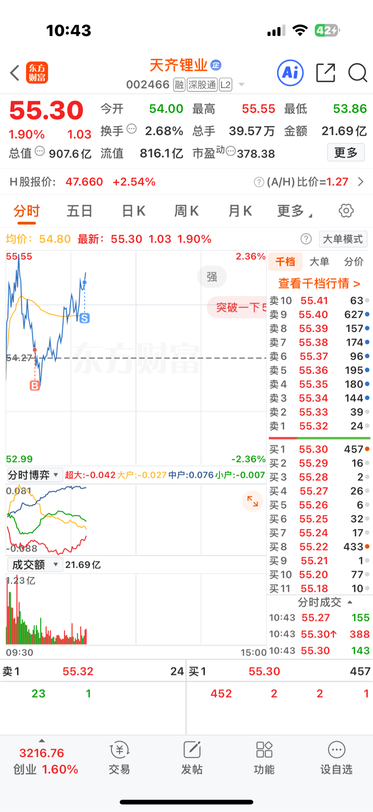 $天齐锂业(SZ002466)$ 永远不知道低点和高点在哪里,所以能赚点我就走了!