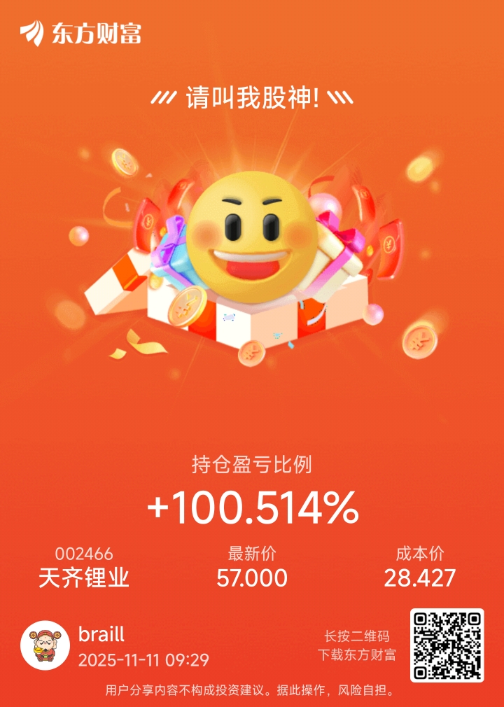 $天齐锂业(SZ002466)$ 我说今天破60,很多人不信,没办法,信念感不是每个人都有的,有信念感的兄弟留下脚印,跟我一起像宇宙发电