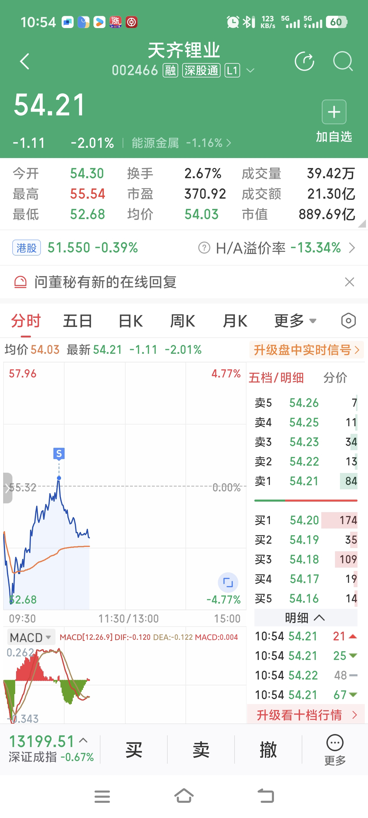 $天齐锂业(SZ002466)$ 昨天进场虽然没买好,今天卖的还算可以,最起码一开盘没杀跌