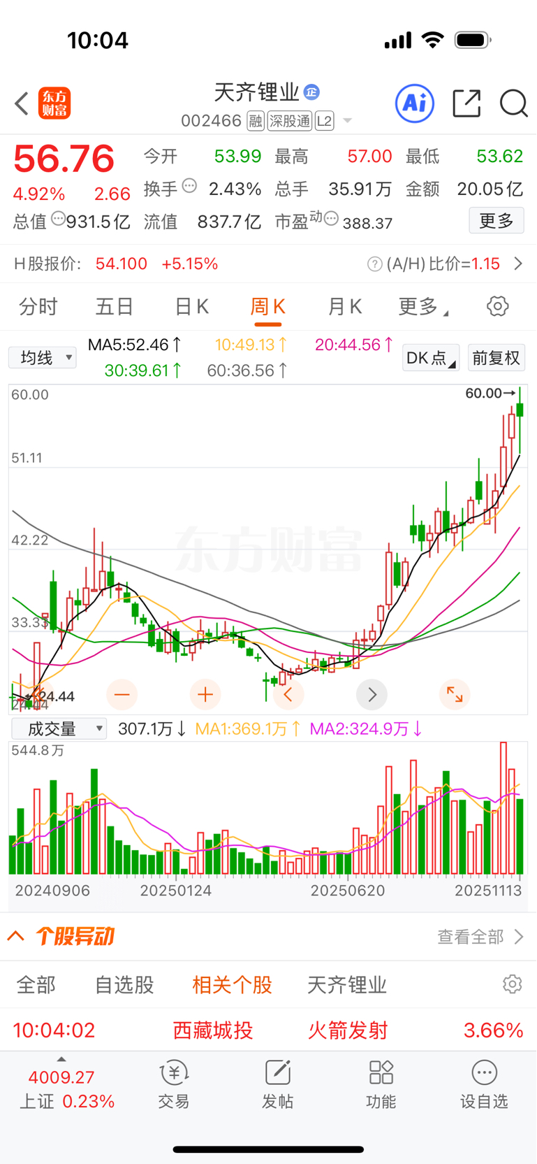 $天齐锂业(SZ002466)$ 调整时间越来越短,低点越来越高了