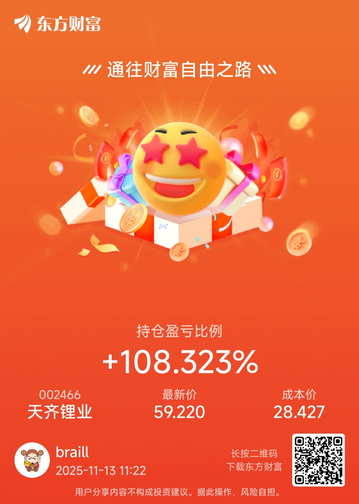 $天齐锂业(SZ002466)$ 60我都没卖,因为我看到100,羡慕昨天亏本跑的兄弟
