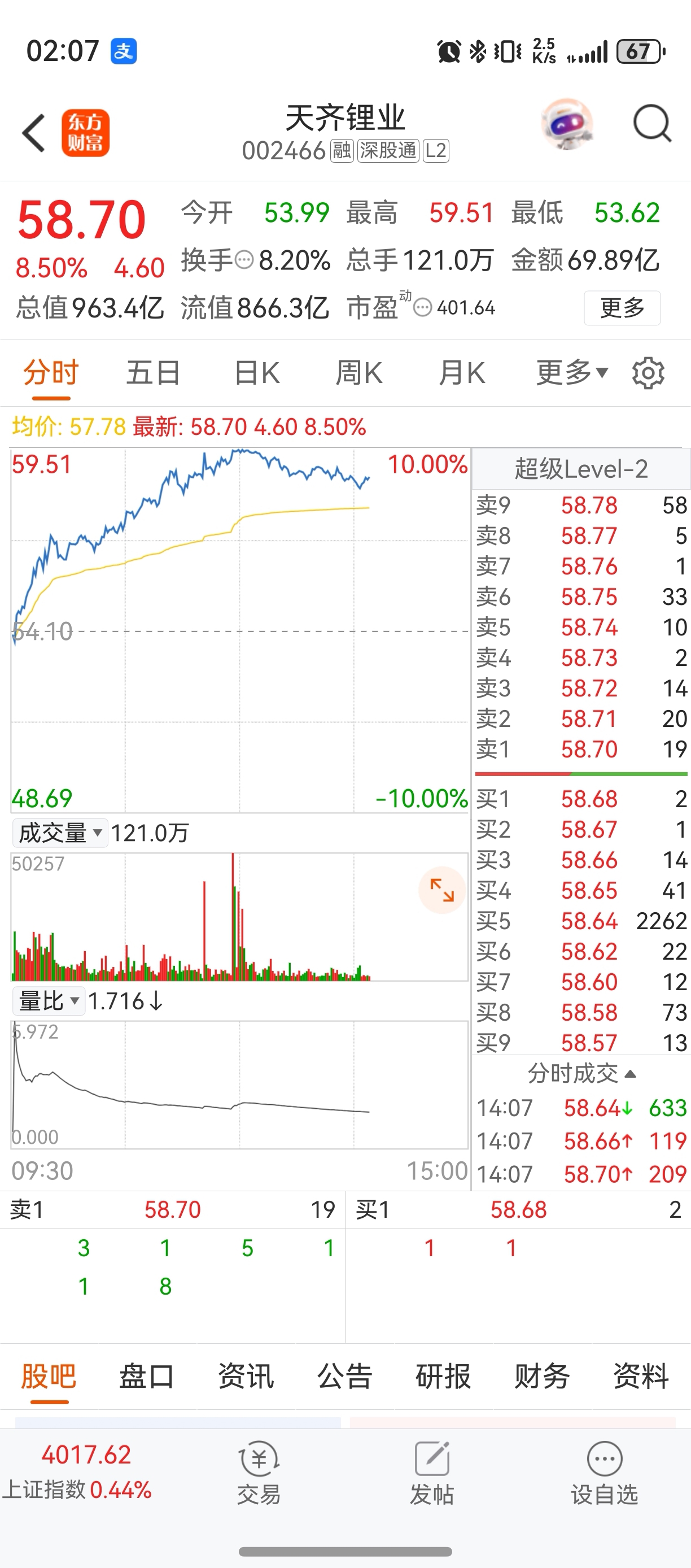$天齐锂业(SZ002466)$ 给点面子,上啊,涨停啊。