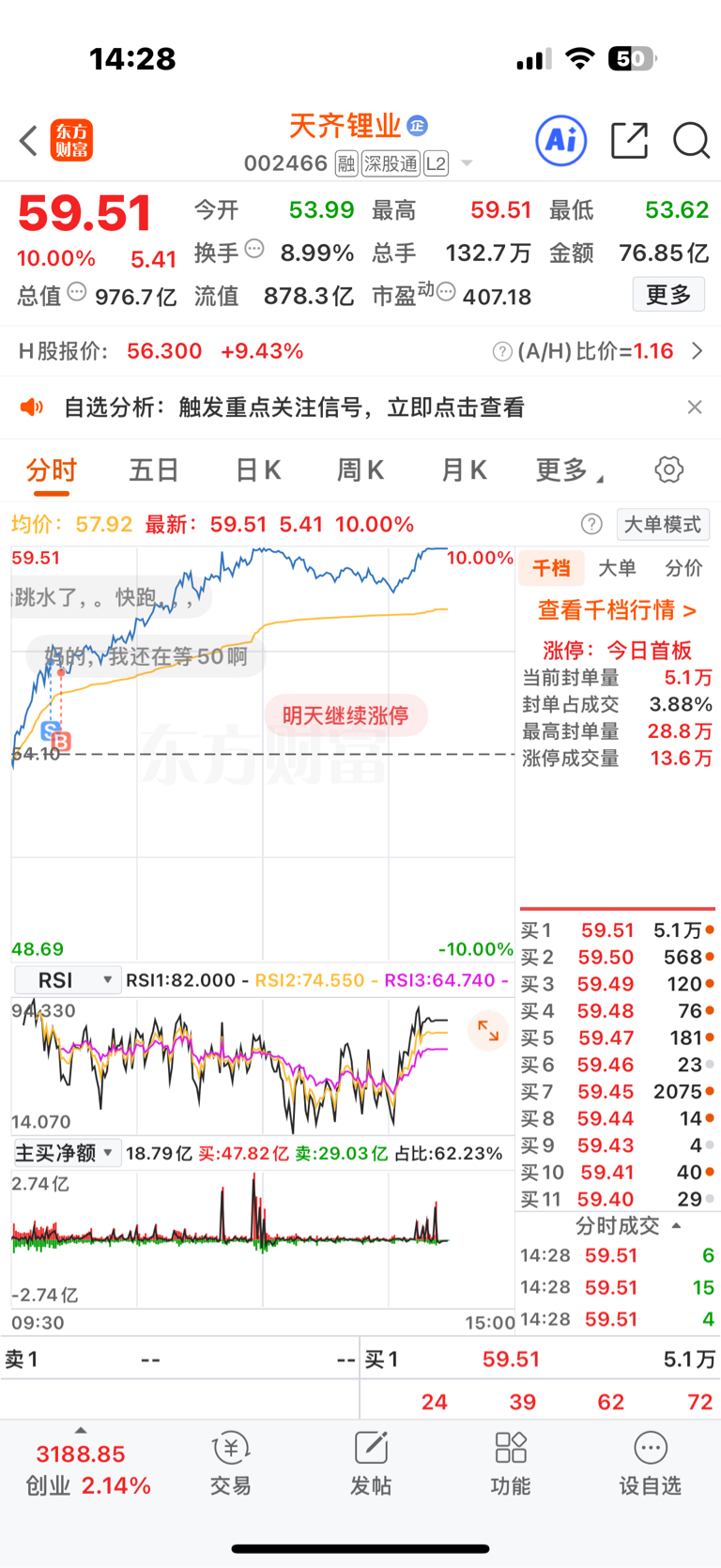 $天齐锂业(SZ002466)$ 今天这T做的好悬,还好接回来了!