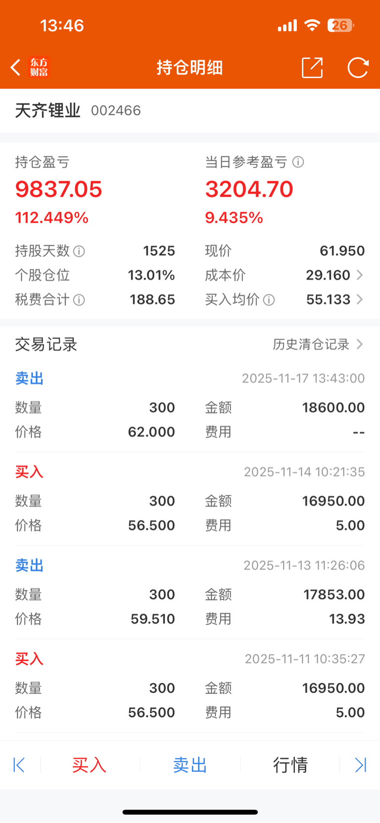 $天齐锂业(SZ002466)$ 无语,多拿一会会就涨停价卖掉了,一下又亏81