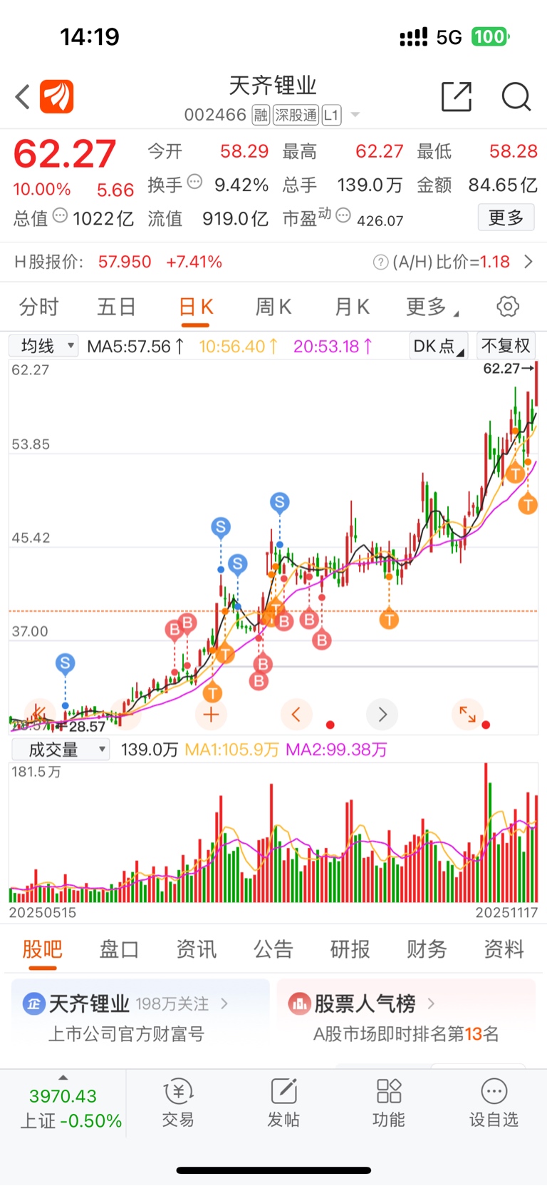 $天齐锂业(SZ002466)$ 不负半年坚持