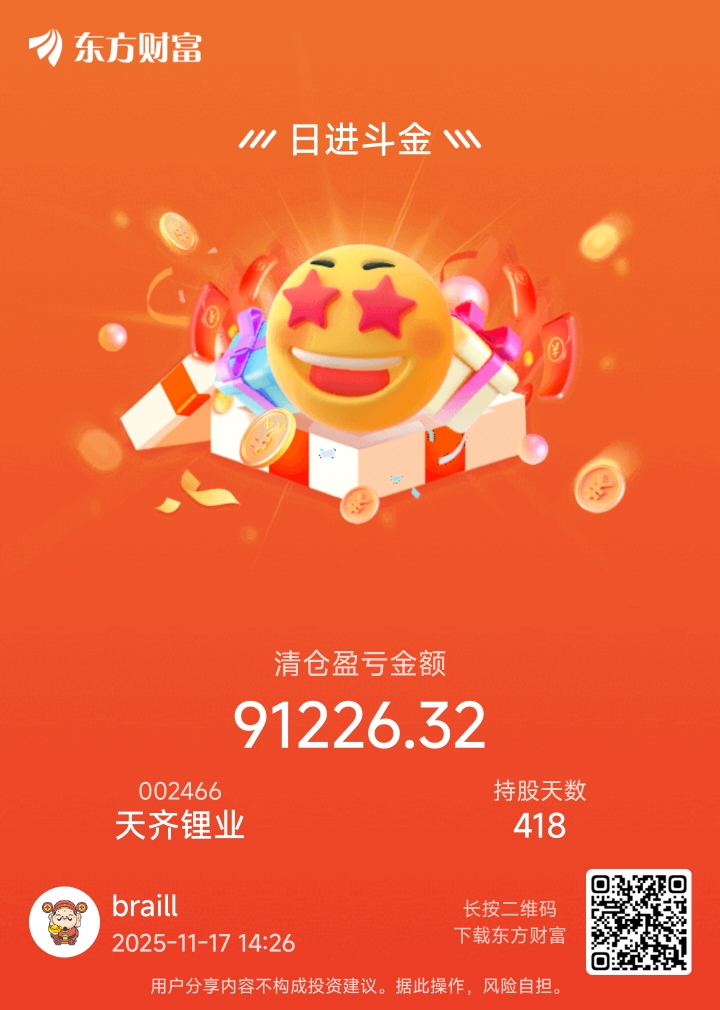 $天齐锂业(SZ002466)$ 留下的兄弟发财,太多天了,不玩了