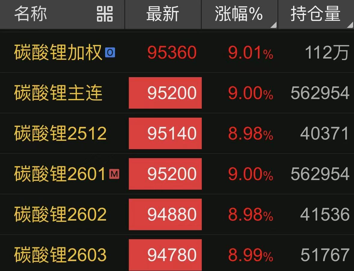 截至当日收盘,主力2601合约上涨9%,最新价升至9.52万元/吨,超过今年8月的高点创出年内新高。