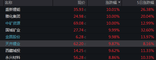 碳酸锂期货集体涨停 天齐锂业重返千亿市值