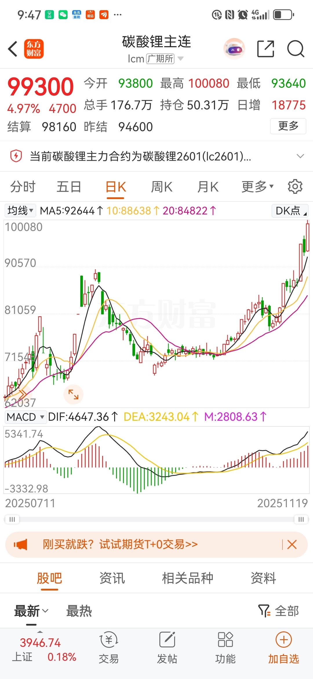 $天齐锂业(SZ002466)$ 期货碳酸锂今天又大涨,