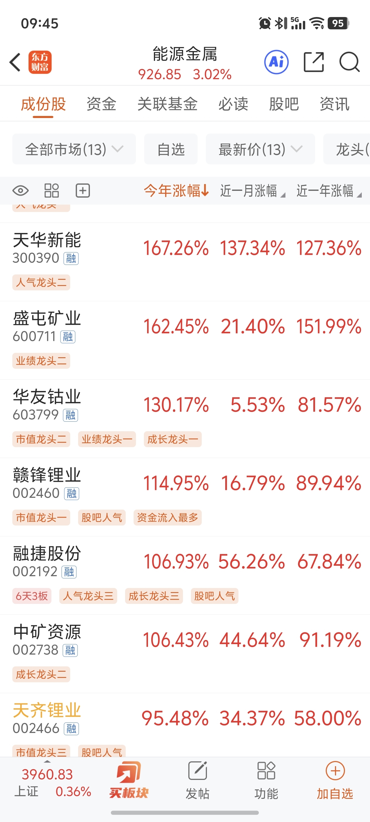 $天齐锂业(SZ002466)$ 今年锂矿股确实你齐哥最弱了